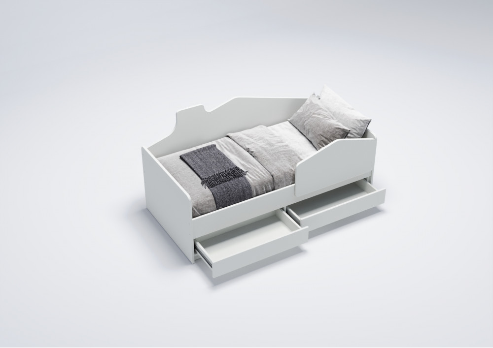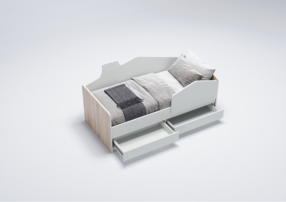 Два выдвижных вместительных ящика оборудованы телескопическими направляющими с фиксаторами, обеспечивая легкость и плавность выдвижения. Эти ящики помогут поддерживать порядок в комнате, а также предоставят дополнительное пространство для хранения игрушек, книг, одежды и других детских принадлежностей.