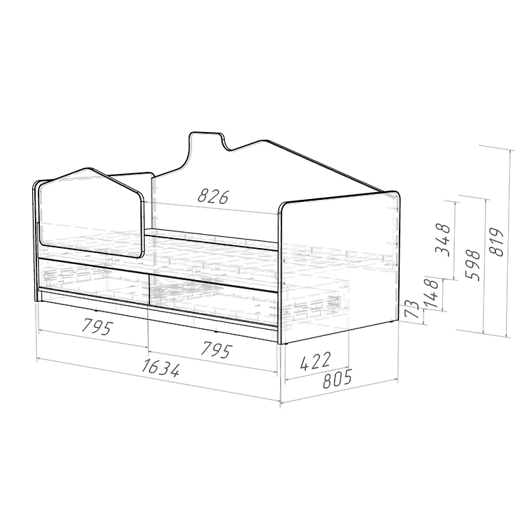 Съемный бортик безопасности является важным элементом кровати "Легенда K203.04 домик". Он может быть установлен в любом месте по периметру кровати или просто убран в зависимости от потребностей вашего ребенка, обеспечивая безопасность во время сна и игр. Кроме того, кровать обработана мягким противоударным кантом, что предотвращает возможные травмы.