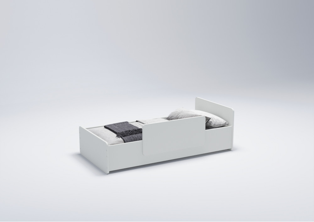 Дизайн и безопасность: Кровать невысокая с изголовьем, обеспечивая дополнительный комфорт и поддержку во время сна. Съемный увеличенный бортик безопасности может быть установлен в любом месте кровати или полностью убран по желанию родителей. Это обеспечивает дополнительную защиту и комфорт во время сна.